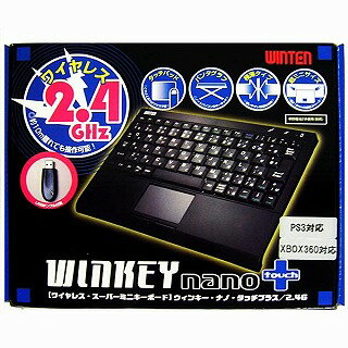 AL-WS077-BK(ウインキー・ナノ・タッチプラス/ワイヤレスミニキーボード・2.4Ghz・PS3対応・XBOX360対応)価格: 9,380円レビュー評価: 5.0 レビュー数:1 2.4Ghz 約10m離れても操作可能!USBドングル付属[ワイヤレス・スーパーミニキーボード]ウィンキー・ナノ・タッチプラス/2.4G型番:AL-WS077-BKJANコード:4571298590024■商品詳細タッチパッド、パンタグラフ、極薄タイプ、超ミニサイズ(幅218mmの超省スペース)単四電池2本使用(別売)、PS3対応、XBOX360対応※裏面の仕様を記載して下さい。●薄型・超ミニサイズキーボード「厚さ21mm」と薄型で、使いやすいキーボードです。テンキーをはじめ、余分な隙間を極限まで省き、「幅218mm」の超省スペースを実現しました。●マウスいらずのタッチパッドを搭載タッチパッド |